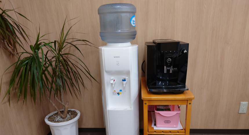 従業員の皆様に無料でお使いいただけるコーヒーマシンやウォーターサーバーを完備しています。